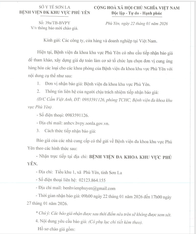 THÔNG BÁO CHÀO GIÁ