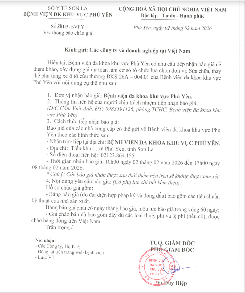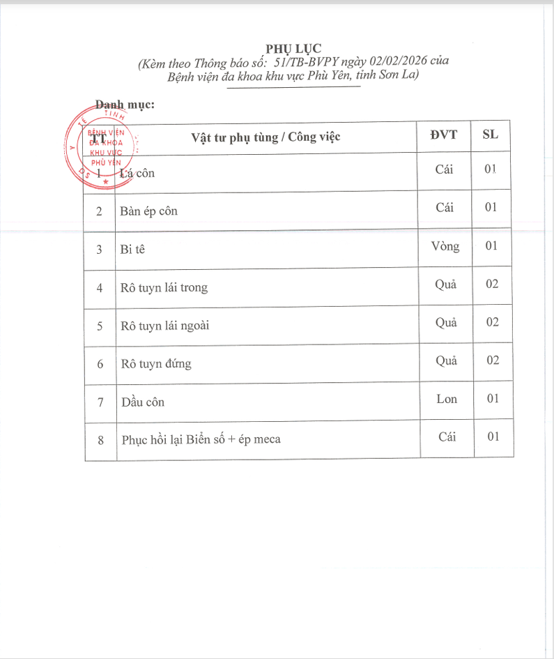 V/v Sửa chữa thay thế phụ tùng xe oto cứu thương BSK 26A-00401 của Bệnh viện