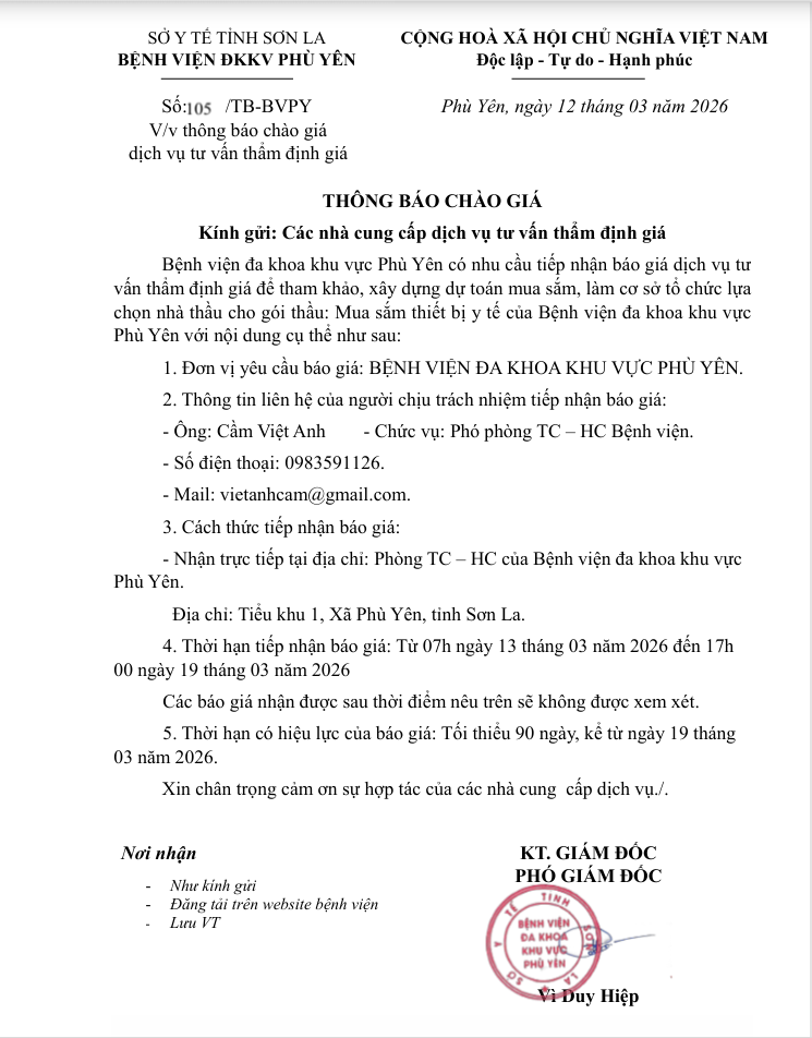 V/v thông báo chào giá dịch vụ tư vấn thẩm định giá