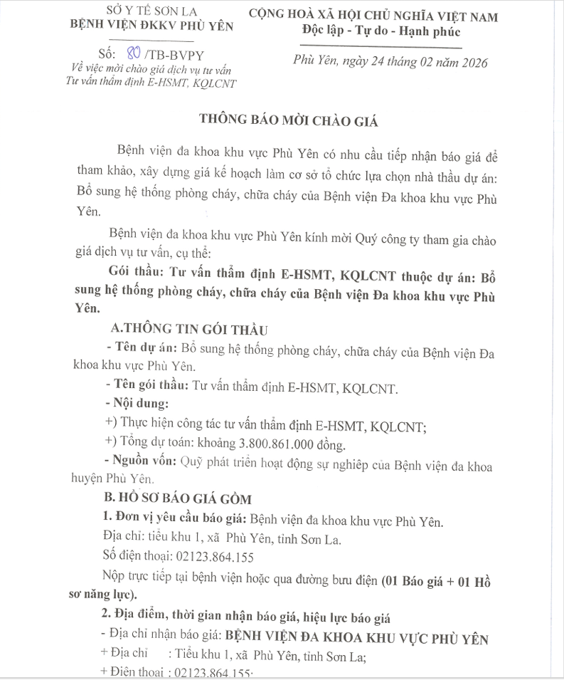 THÔNG BÁO MỜI CHÀO GIÁ