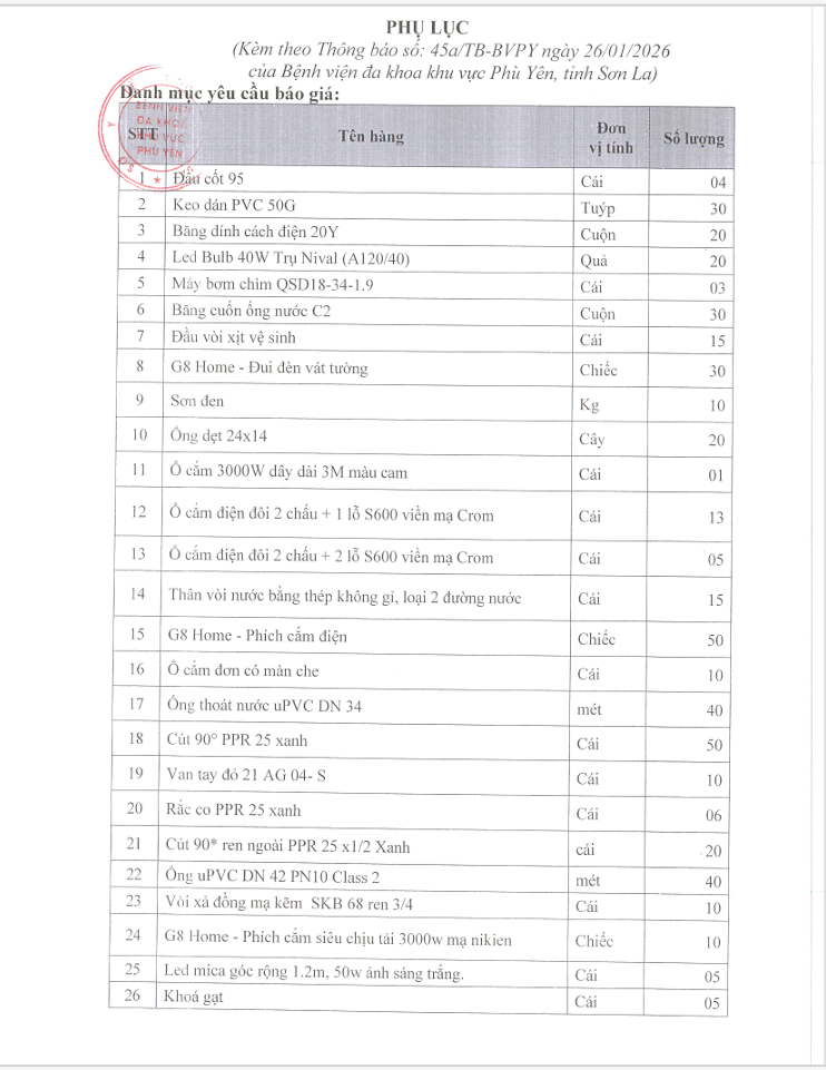 YÊU CẦU BÁO GIÁ