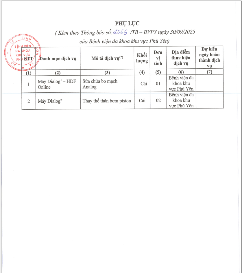 Sửa chữa máy chạy thận nhân tạo Dialog+ HDF Online của Bệnh viện đa khoa khu vực Phù Yên