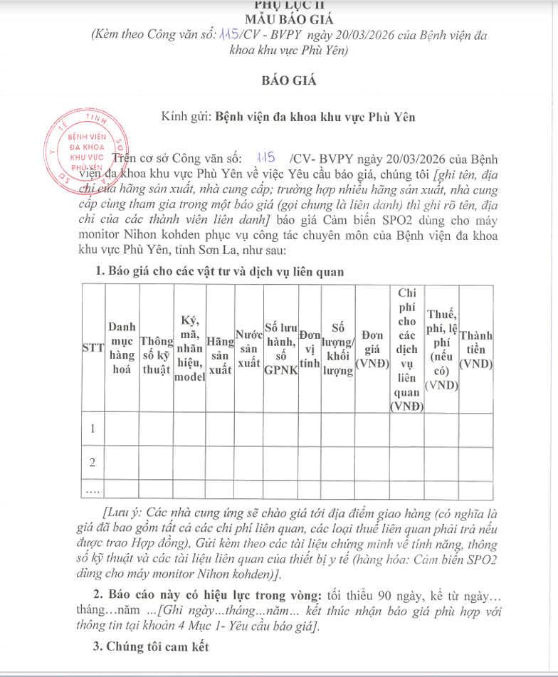 V/v yêu cầu báo giá: Mua cảm biến SPO2 dùng cho máy moniter Nihon kohden phục vụ công tác chuyên môn của Bệnh viện