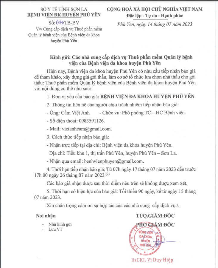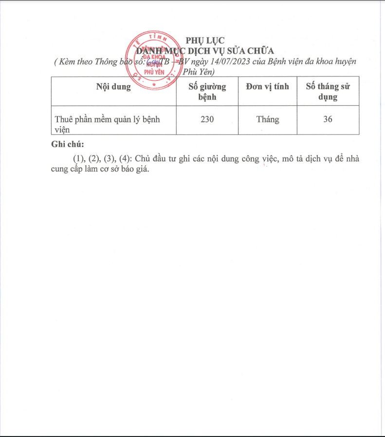 THÔNG BÁO CÁC NHÀ CUNG CẤP DỊCH VỤ PHẦN MỀM QUẢN LÝ BỆNH VIỆN