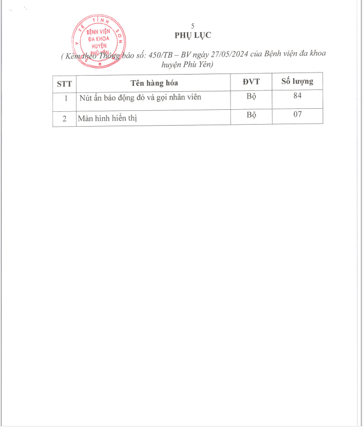 Cung cấp dịch vụ Lắp đặt hệ thống Báo động đỏ của bệnh viện đa khoa huyện Phù Yên