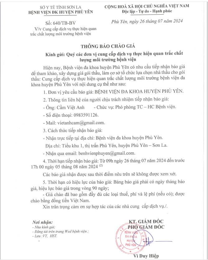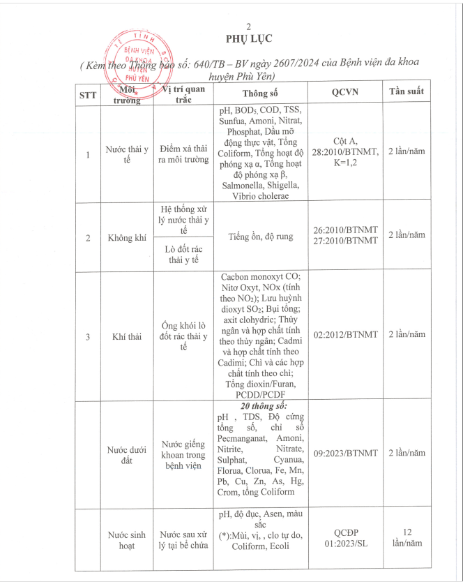 THÔNG BÁO CHÀO GIÁ QUAN TRẮC MÔI TRƯỜNG BỆNH VIỆN NĂM 2024