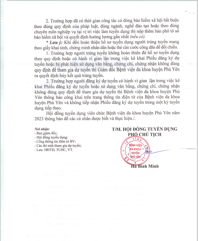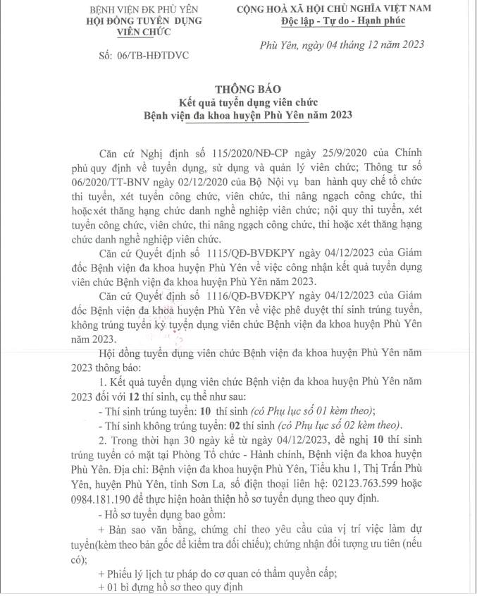 THÔNG BÁO KẾT QUẢ TUYỂN DỤNG VIÊN CHỨC CỦA BỆNH VIỆN ĐA KHOA HUYỆN PHÙ YÊN NĂM 2023