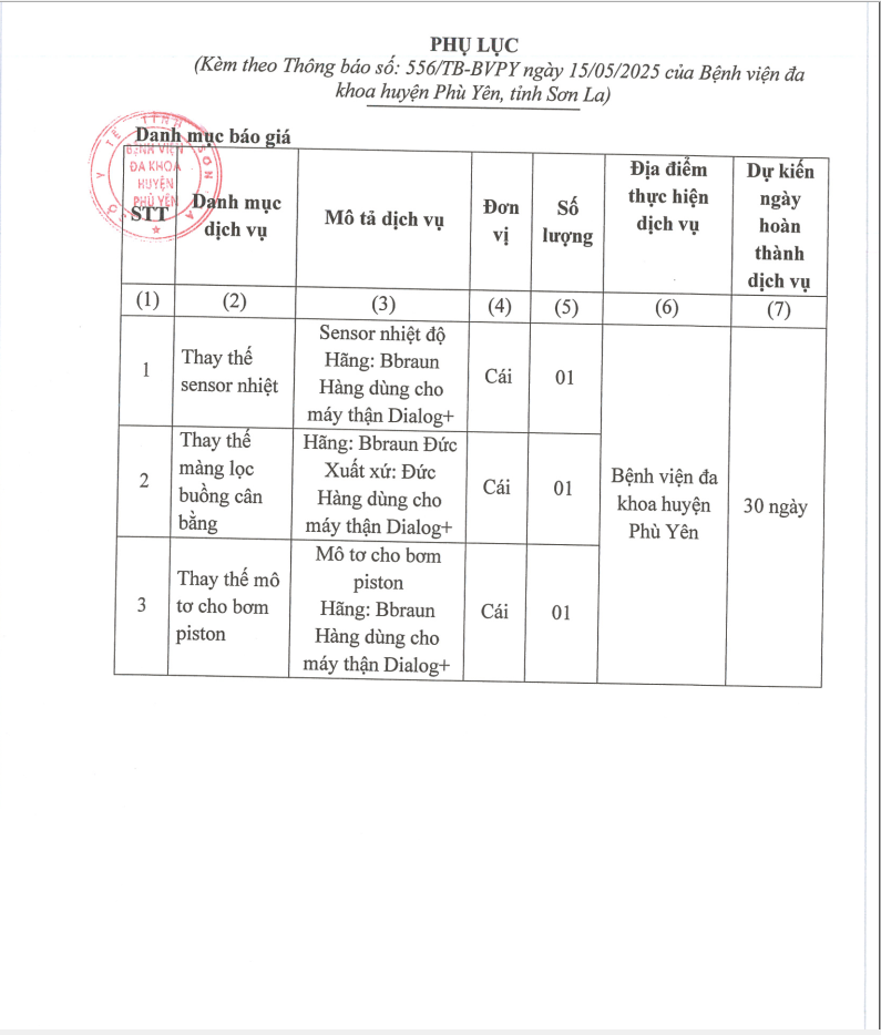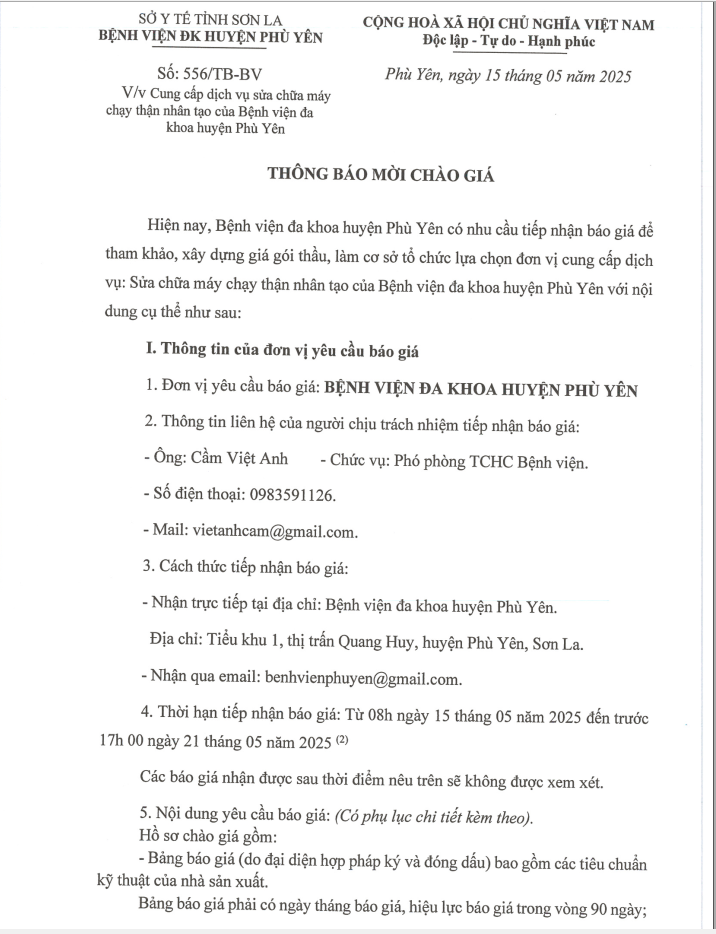 V/v Cung cấp dịch vụ sửa chữa máy thận nhân tạo của Bệnh viện