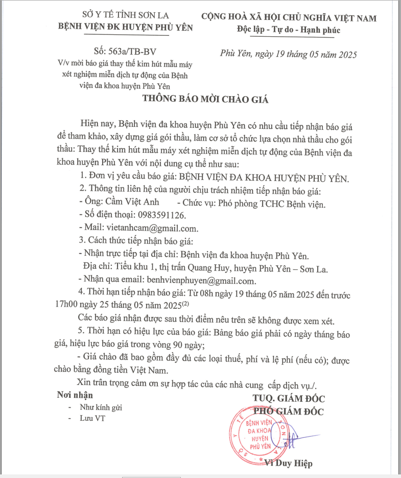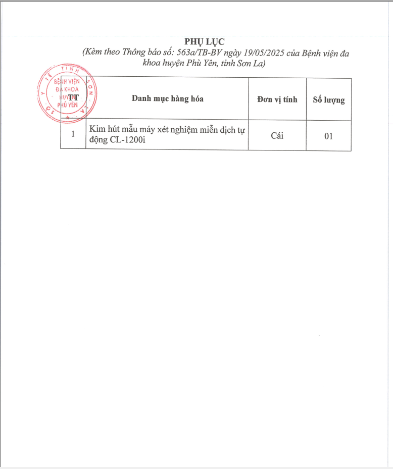 V/v thay thế kim hút mẫu máy xét nghiệm miễn dịch tự động của bệnh viện