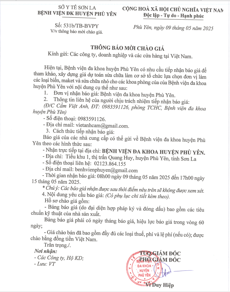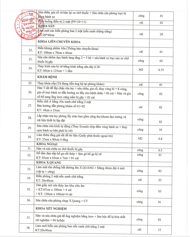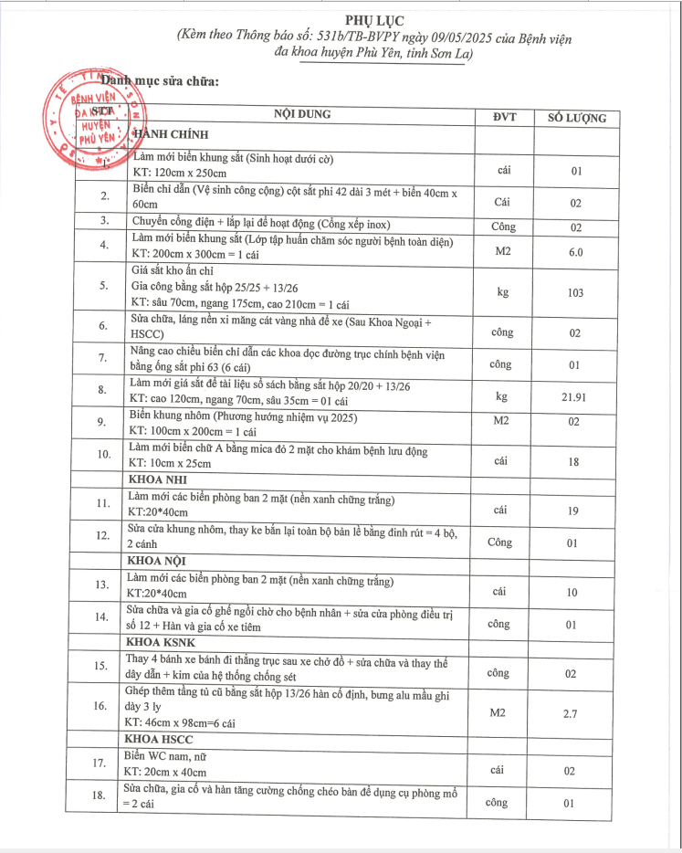 V/v làm các loại biển, Maket và sửa chữa nhỏ các khoa phòng bệnh viện