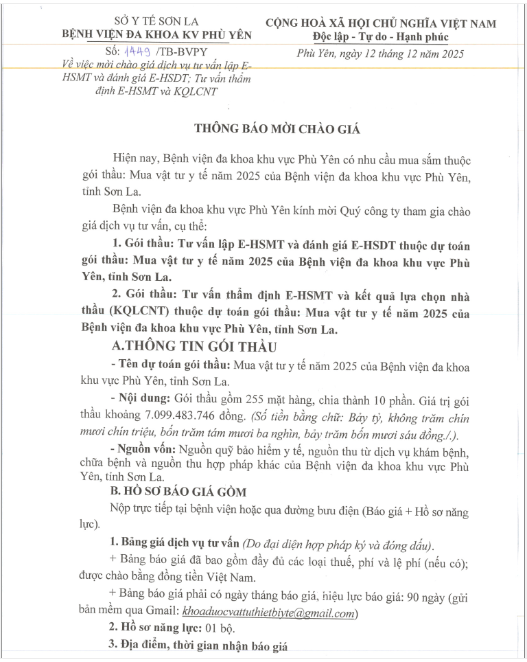 THÔNG BÁO CHÀO GIÁ