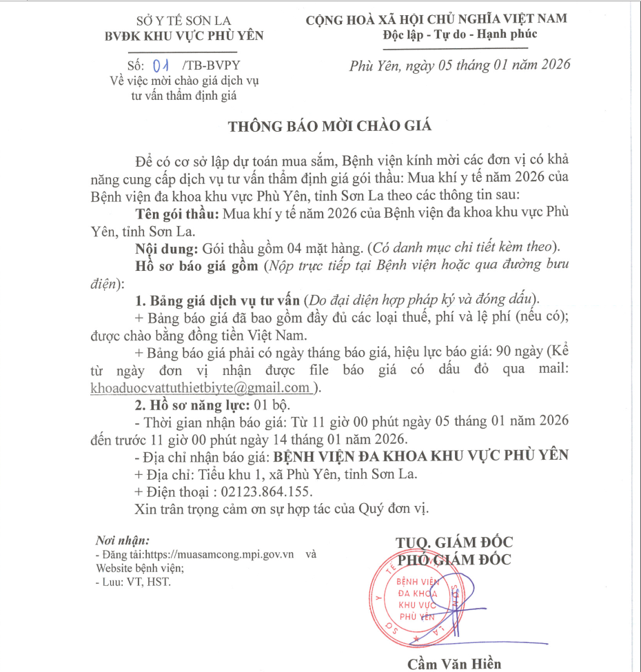 THÔNG BÁO CHÀO GIÁ