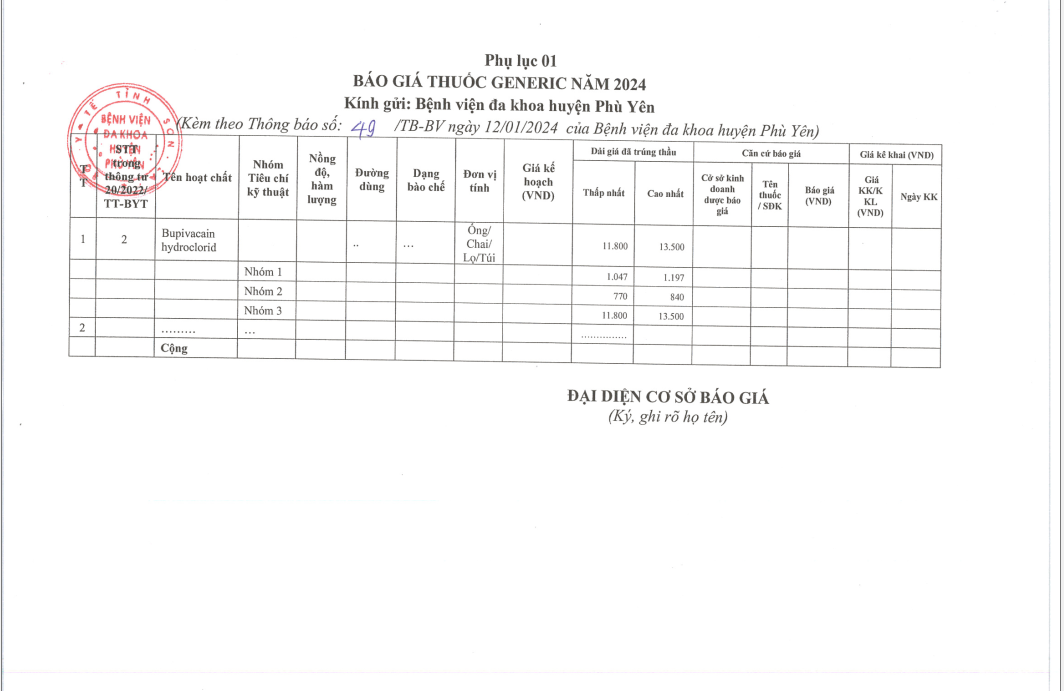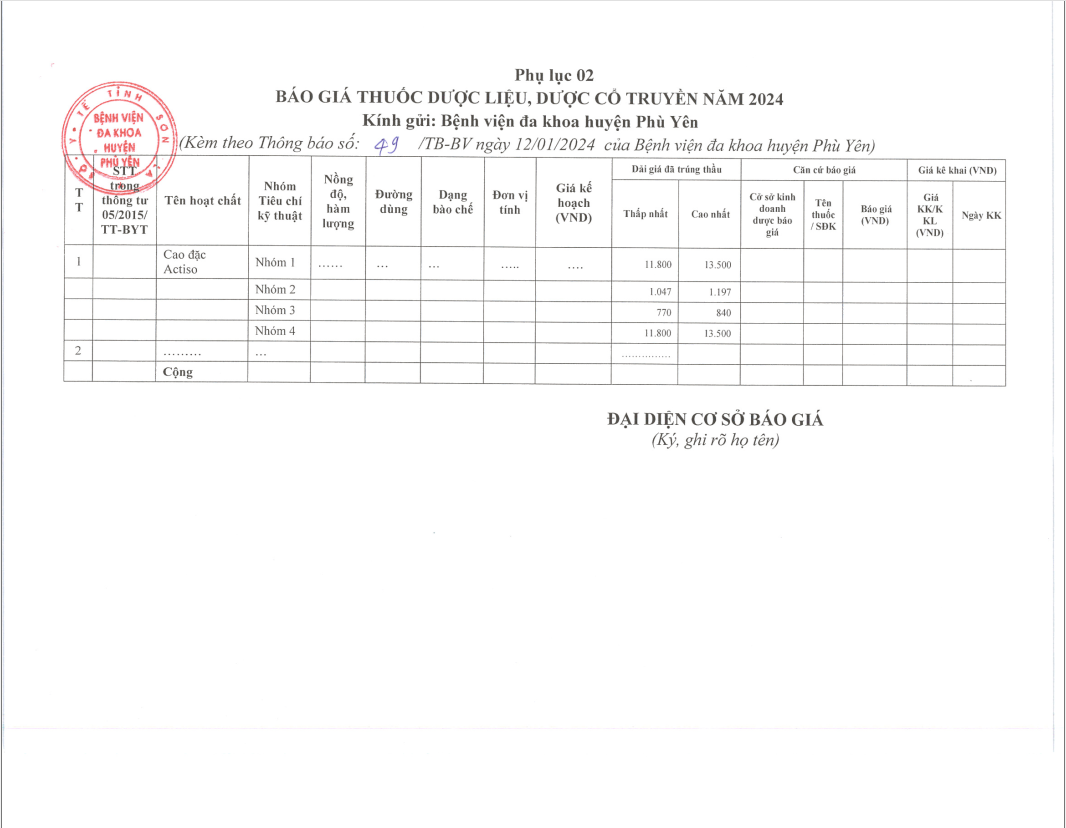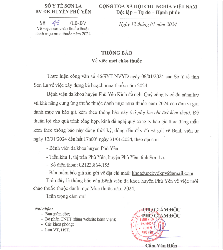 THÔNG BÁO MỜI CHÀO THUỐC NĂM 2024 (Có Danh mục kèm theo)