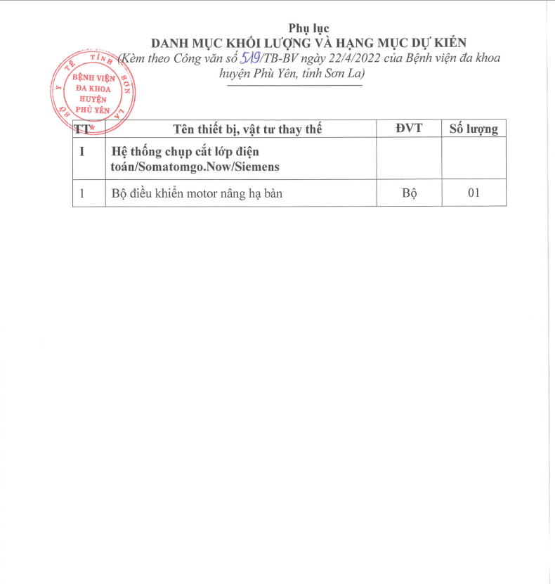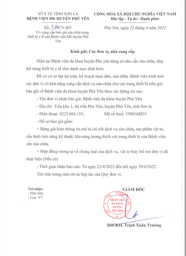 Thông báo mời thầu Bệnh viện đa khoa huyện Phù Yên