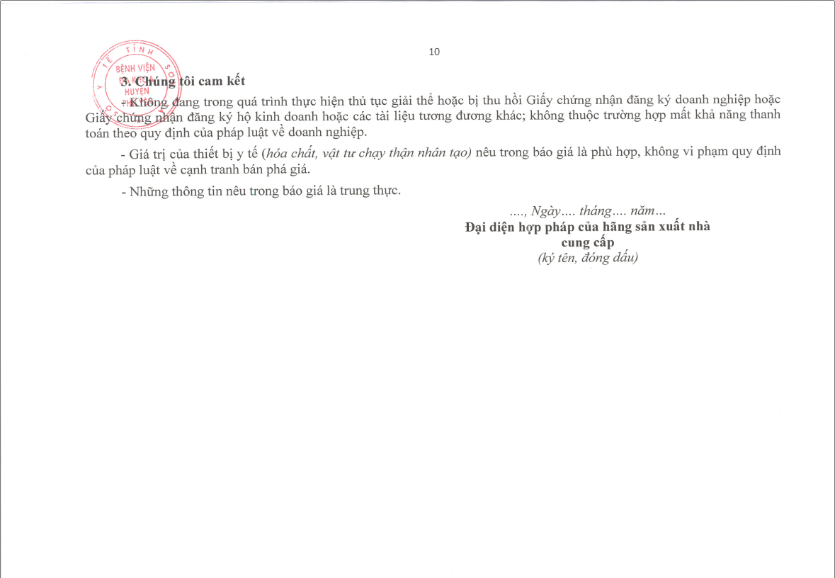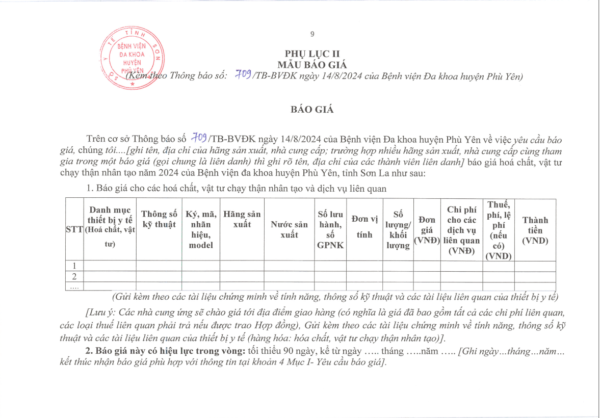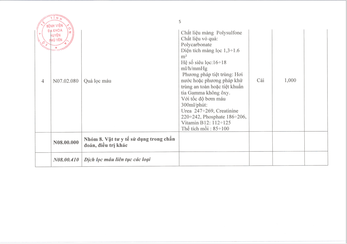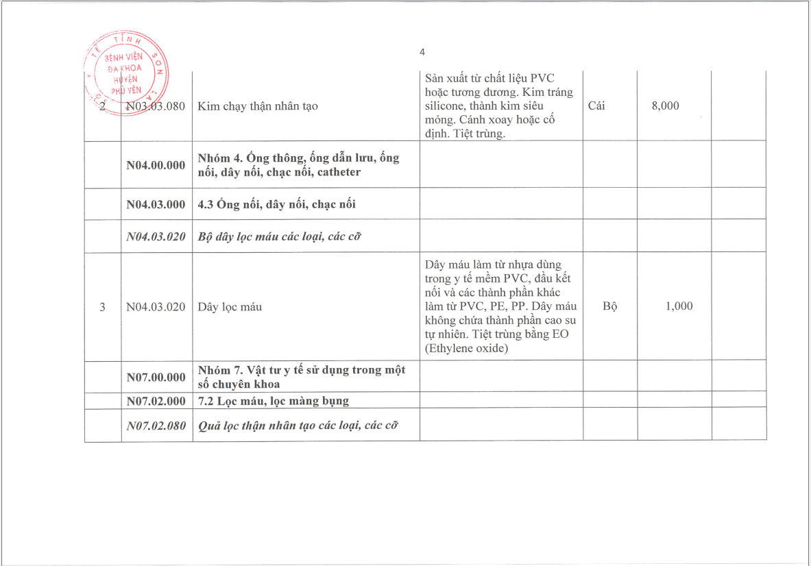 Yêu cầu báo giá: Mua sắm hoá chất, vật tư chạy thận nhân tạo