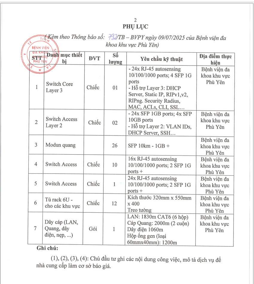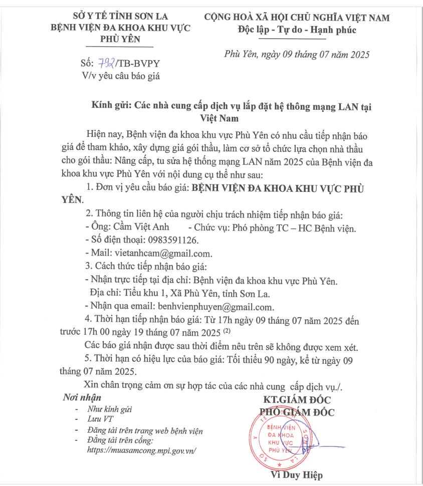 Nâng cấp, tu sửa hệ thống mạng LAN năm 2025 của Bệnh viện đa khoa khu vực Phù Yên