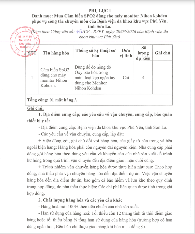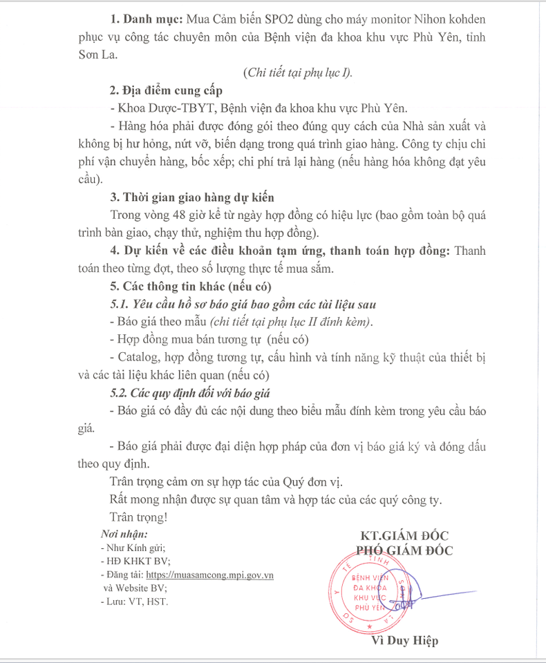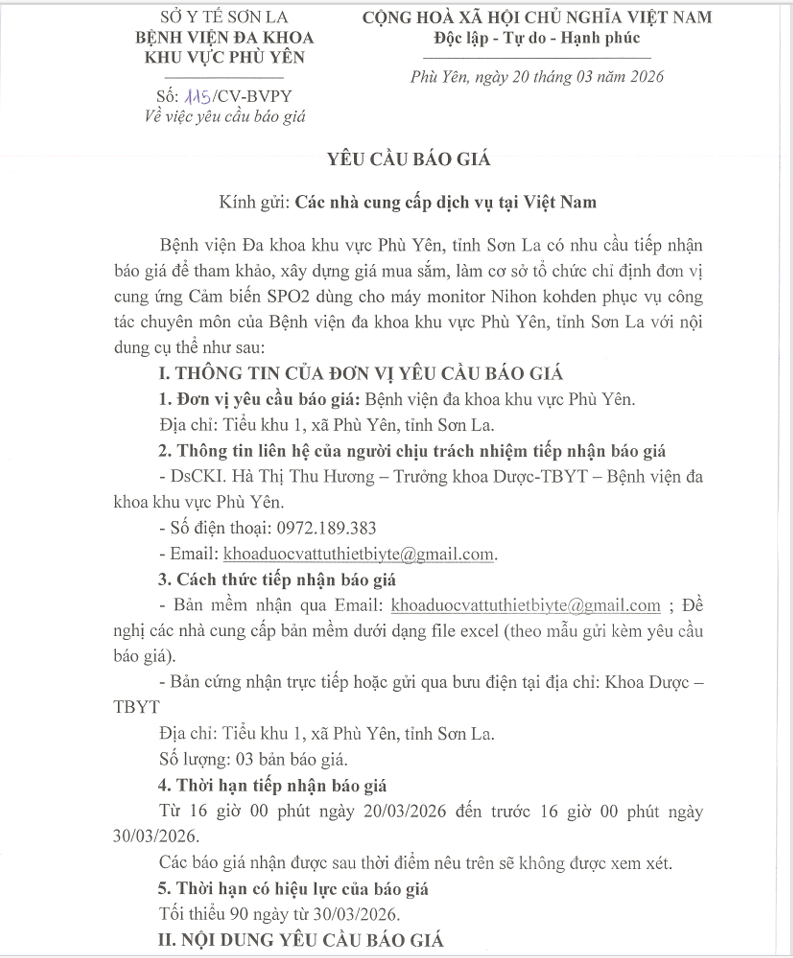 V/v yêu cầu báo giá: Mua cảm biến SPO2 dùng cho máy moniter Nihon kohden phục vụ công tác chuyên môn của Bệnh viện